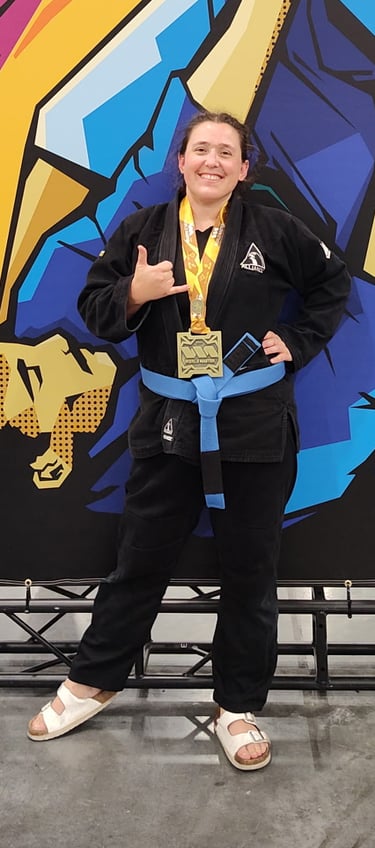 "I love helping young athletes build confidence and have fun on the mats at the same time. Outside of jiu-jitsu, I love being outdoors, hiking, camping, and finding new adventures."